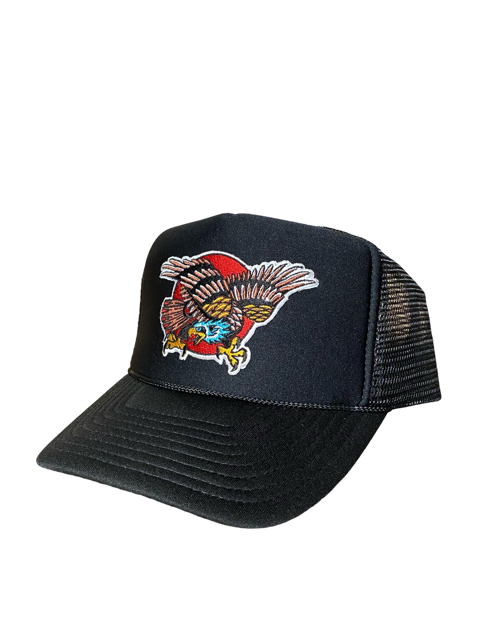 SGM Eagle Black Curved Brim Foam Trucker Hat