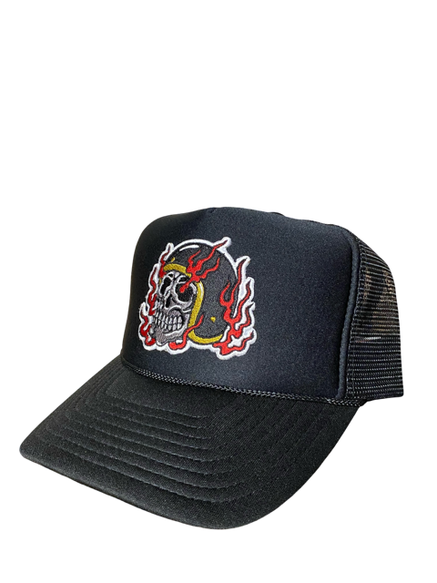 SGM Skull Black Curved Brim Foam Trucker Hat
