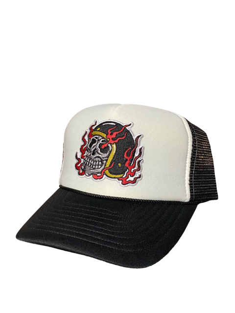 SGM Skull Black/White Curved Brim Foam Trucker Hat