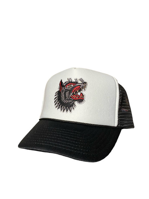 SGM Wolf Black/White Curved Brim Foam Trucker Hat
