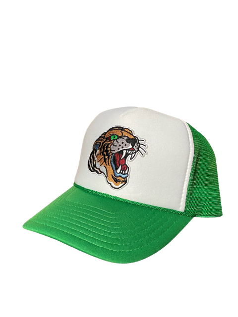 SGM Tiger Kelly Green/White Curved Brim Foam Trucker Hat