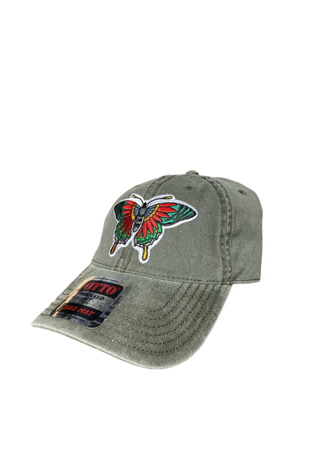 SGM Butterfly Dark Olive Curved Brim Dad Hat